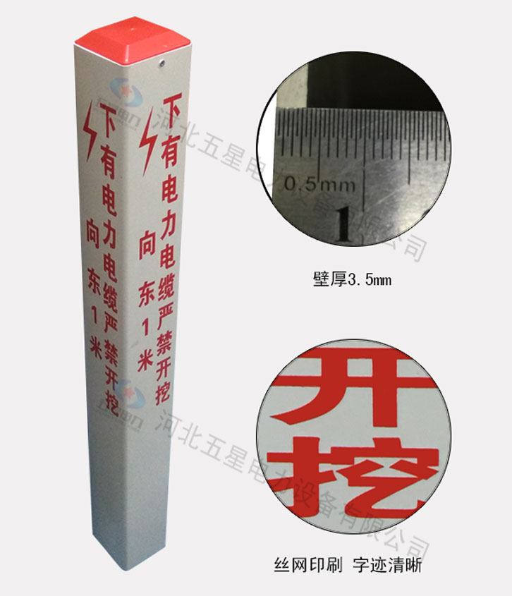 塑鋼標志樁采用塑鋼材質(zhì)制成,也稱為pvc標志樁,樁體為白色,常規(guī)規(guī)格為100mm*100mm、150mm*150mm。塑鋼標志樁材質(zhì)輕便、彈性好、耐酸堿、耐腐蝕、抗老化性能好、安裝運輸方便,是警示地下管線的標識產(chǎn)品,能夠清楚的標明管線的鋪設方向,便于大家區(qū)分不同的管線走向。