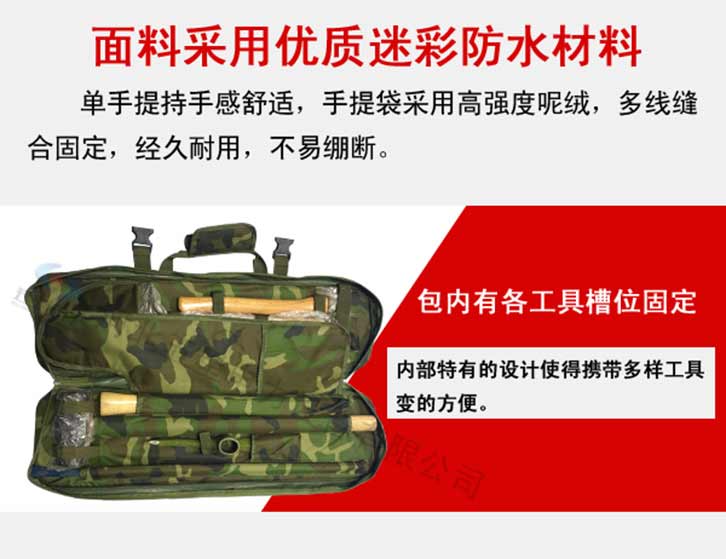 防汛搶險組合式工具包特點:靈活性好,質量可靠,可在惡劣的環(huán)境下單兵背負作業(yè),攜帶方便,體積小、相互結合該組合工具配備齊全適用于救援隊員適用??筛鶕枨蠖ㄖ飘a品配件及功能性。
