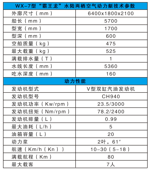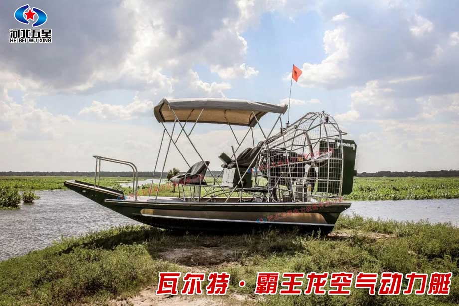 河北五星“霸王龍”水陸兩棲空氣動(dòng)力艇是一種運(yùn)用空氣動(dòng)力學(xué)、采用航空發(fā)動(dòng)機(jī)和空氣螺旋槳推動(dòng),通過(guò)置于船體上部的大功率內(nèi)燃機(jī)帶動(dòng)碳纖維螺旋槳產(chǎn)生空氣動(dòng)力的多地形交通工具。所搭載的航空發(fā)動(dòng)機(jī)動(dòng)力系統(tǒng)強(qiáng)勁,功率可達(dá)300馬力以上,螺旋槳推力可達(dá)500公斤以上,操縱機(jī)動(dòng)靈活,靜水巡航速度可達(dá)40km/h,可以高時(shí)速可達(dá)70km--120km/h。