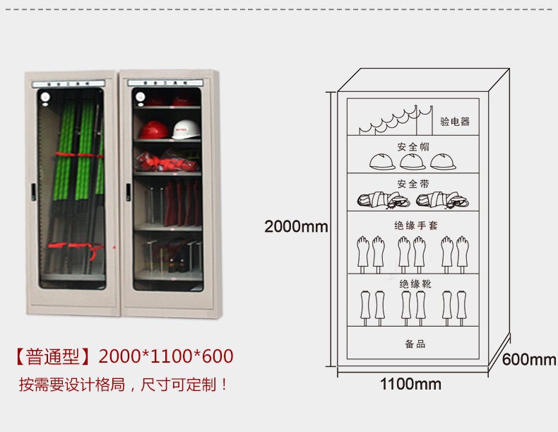 電力安全工具柜又稱安全工器具柜,按功能可以分為普通排風除濕柜,智能烘干除濕柜,智能抽濕除濕柜等 外殼選用1.2優(yōu)質(zhì)冷板,采用磷化鋅系、藝術(shù)型靜電噴涂,高強度鋼化透明玻璃(外觀色為微機灰)。接地線均配有接地線繞線架及帶夾反光編號牌,使接地線纏繞規(guī)范不易損壞,擺放整齊使用方便;絕緣手套配有防粘連撐板,絕緣擋板、絕緣棒、驗電筆、操作桿均設有橡膠墊定位卡,安全帶、腳扣、鑰匙設有專用掛鉤,標示牌按種類分格放置,圍網(wǎng)配有專用包,網(wǎng)桿配有專用筒,網(wǎng)桿座分格放置,防毒面具配有專用箱,呼吸器設有專用滑板。廣泛應用于各種電壓等級的變電站、集控站、線路工區(qū)以及電力公司客服中心等單位和部門,并適應不同溫濕度地區(qū)的使用。